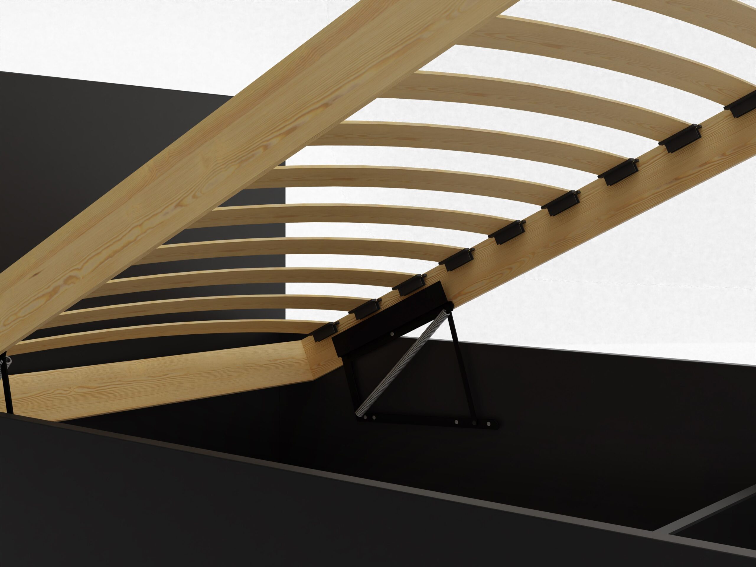 • Inteligentne przechowywanie: Wnętrze łóżka zostało wzmocnione 3 poprzecznymi podporami, które tworzą dwie funkcjonalne przegrody – idealne na pościel lub sezonowe ubrania.