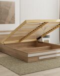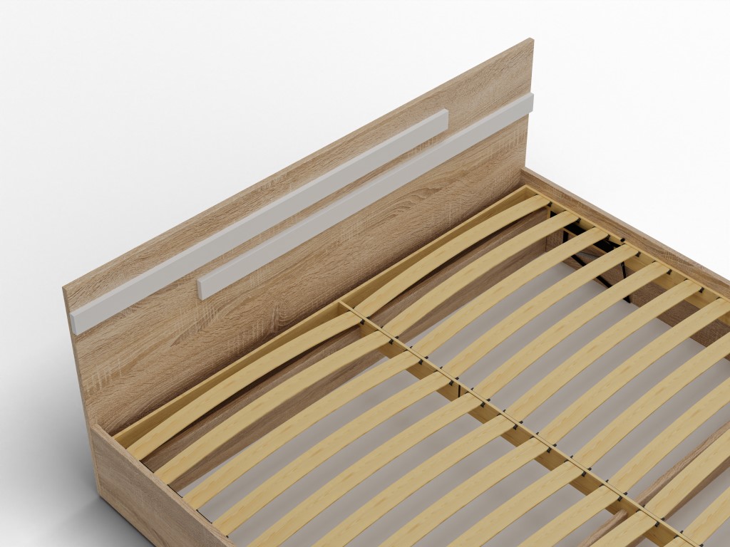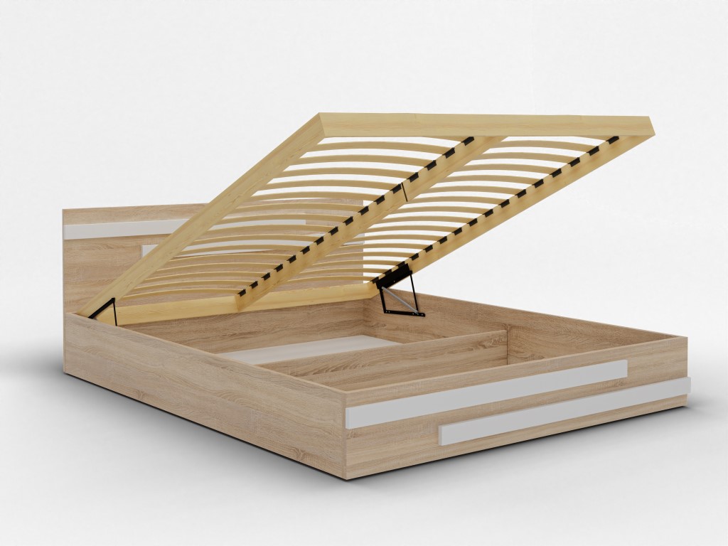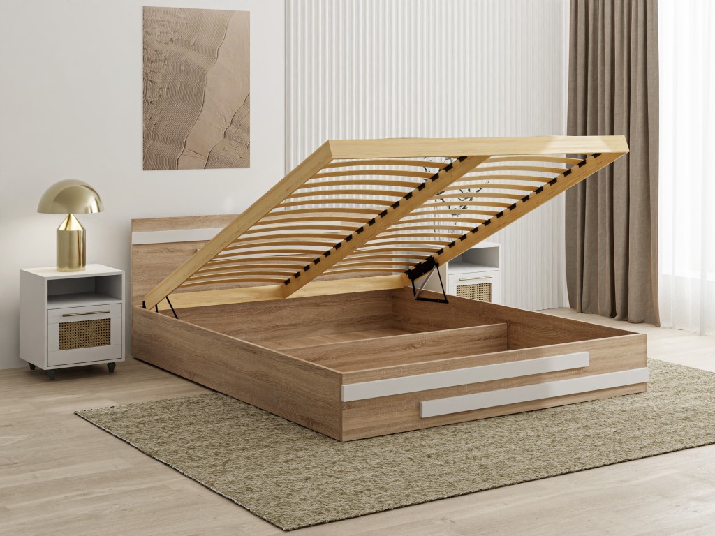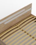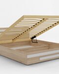- Inteligentne przechowywanie: Wnętrze łóżka zostało wzmocnione 3 poprzecznymi podporami, które tworzą dwie funkcjonalne przegrody – idealne na pościel lub sezonowe ubrania.