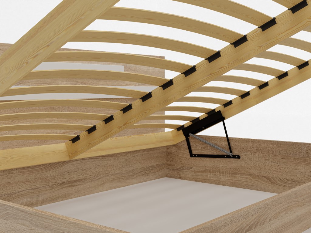 - Wygodny dostęp: Podnoszony drewniany stelaż składający się z 32 sprężynujących listew, wytrzymałe automaty sprężynowe oraz specjalny uchwyt pozwalają na lekkie i szybkie uniesienie stelaża.
